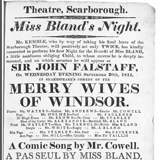 But in 1815 it was a different comic farce on the bill for spectators, staged by an actor manager who was just as famous in his day. Stephen Kemble had a circuit of theatres across the country, but particularly in the North.