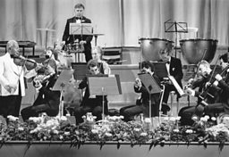 Max Jaffa’s orchestra was very much in the palm court tradition. He had no brass players, just strings, woodwind, piano and percussion. When Simon Kenworthy took over as musical director in 1992 until 2006 he revamped the line-up.