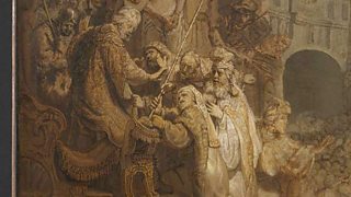 Rembrandt does that, of course, but he asks us to do something more – and something much more demanding: to empathise with each of the human actors here, to feel what they are feeling, to notice how they all try to avoid taking final responsibility – and to find in them part of ourselves.
