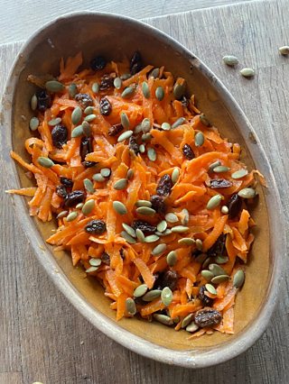 Variations: you can add a handful of finely shredded red or white cabbage for a more coleslaw type version; add chopped apple instead or as well as the raisins; or you can use firm young parsnips instead of carrots.