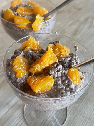 I was surprised how much I liked this – but I guess it’s a social media sensation for a reason! The chia seeds swell and make a nice slippery jelly, full of fibre, which combines really nicely with the cocoa. It’s so quick and easy. It makes an almost instant pud, but also a healthy treaty snack for any time of day.