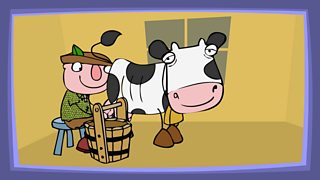 Ma looks at the empty kitchen cupboards and bursts into tears. Jack tries to cheer her up by saying that at least they still have some milk to drink - from their cow, Daisy. Jack milks Daisy every day but recently she has been producing a little less milk each time...and on this occasion she is only able to produce two tiny drops. Jack is forced to accept that Daisy's milking days are over. Ma decides there is only one thing to do: they must sell Daisy to get some money for food and Jack will have to take her to market the following day. Poor Jack...Daisy is his only friend.