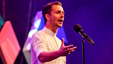 The rapper makes a foray into spoken word at the BBC Poetry Slam final in Edinburgh.