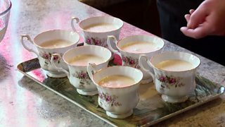 Dòirt seo ann an cupannan-tì grinn agus cuir dhan fhuaradair iad gus am bi iad tiugh.
