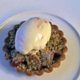 Yna ychwanegu'r crymbyl a'r y top a'i goginio am oddeutu 10-15 munud yn y popdy ar wres o 180 C