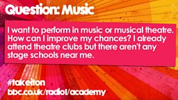 Also, use the Internet. Another great way to get into music is to create an online profile/portfolio. You can mail your profile to stage schools and agents to generate interest.