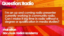 So there are courses and degrees you can do in radio and broadcasting but they are not the be all and end all. You could do another course at university and do radio on the side. Or you could choose university is not right for you at all and go down the work experience route.