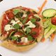 Cuir na tomàtothan air muin seo agus an uair sin am brocail. Spìon an càise mozzarella na phìosan beaga agus sgap air uachdar na pizzathan. Cuir spàin mhòr de phesto air gach fear.