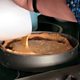An toiseachd cuir crathadh min air a bhòrd an uair sin rolaig na taoise còmhnard ann an cumadh cearcall a fhreagras air an soitheach tort agad. Cuir am pastraidh ann an tiona cruinn le bonn a thig a-mach às agus sgioblaich na h-oirean far a bheil an taois ro phailt. Cuir pìos paipear-fuine sìos agus lìon le pònair-crèadha gus a bhruich falamh airson mu 20 mionaid aig 200 Celsius.