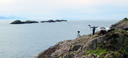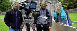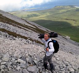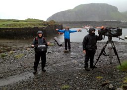 Our crew of soundman Richard Paterson and cameraman Richard Cook are very experienced at dealing with whatever the elements throw at them at any altitude. They even manage to smile through all the rain, midges and sea sickness!