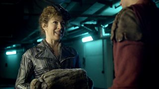 And talking of the Loch Ness Monster, the sinister snake in Thin Ice isn’t the first creature to be found lurking in the Thames. In Terror of the Zygons we discovered that Nessie is actually a Skarasen which followed the Doctor to London and eventually made its way into the city’s famous river. In The Dalek Invasion of Earth the Doctor was confronted by a Dalek that emerged from the Thames and in Aliens of London, the Slitheen crashed a craft, carrying the so-called ‘Space Pig’ into its waters.