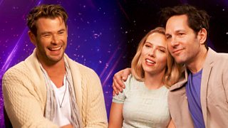Chris Hemsworth, Scarlet Johansson and Paul Rudd aka Thor, Black Widow and Ant-Man talk superheroes and secrecy for Marvel's blockbuster crossover.