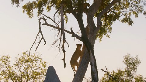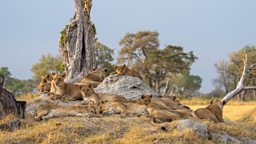 A leopard's meal provides an unexpected opportunity for the hungry Xudum Pride lions.