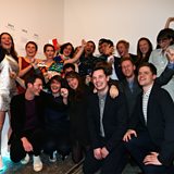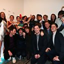 The Assemble architecture collective pictured with Kim Gordon at the Turner ceremony at Glasgow's Tramway, December 2015