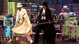 Is this art? Jimmy Cauty and Bill Drummond in another musical incarnation, The Timelords, perform Doctorin the Tardis on Top of the Pops, 1988