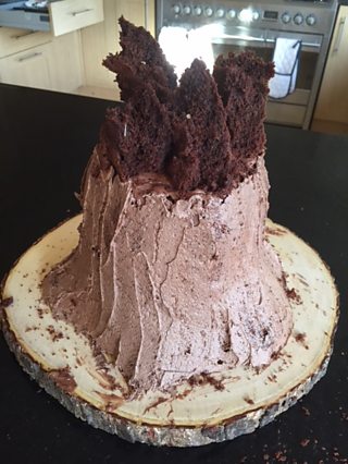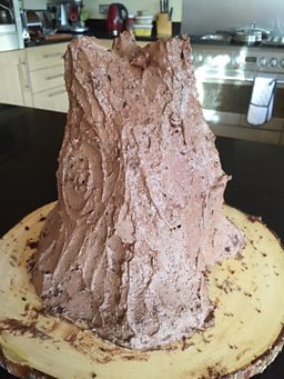 Once I had layered and sandwiched the cakes I carved it to look like a tree trunk.