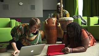 Ghanaian artist Naa Densua Tordzro with Scottish singer and composer Karine Polwart.