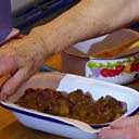Ris a phana cuir aon spàin-bhùird de fhlùr, cairteal pinnt sùgh feòla, steall port agus spàin de shilidh dearcan-dearga. Cuir seo uile mun cuairt agus ma tha e fhathast caran tioram cuir beagan uisge ris.