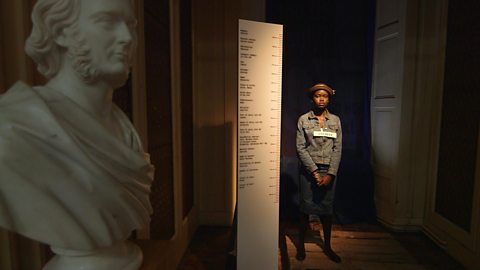 Visitors are confronted by a ‘human zoo’ and ethnographic displays popularised during the late 19th and early 20th centuries, in each tableau the audience is confronted by a black performer who casts an unsettling, silent gaze at the viewer.