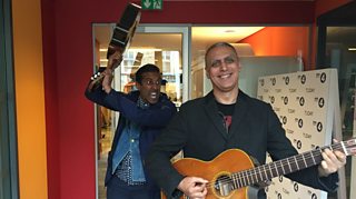 Nihal gets to grips with the guitar for the first time live on air.