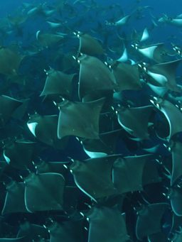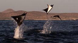 Forming the largest aggregations of rays in the world, still very little is known about this species. They gather in the thousands in huge shoals, and undergo one of the greatest spectacles of nature. It’s thought the mobulas gather in such numbers to find a mate. But before the mating ritual begins, they fuel up on the plankton rich waters to gain the energy they need for the display. As the numbers grow and the shoals get bigger, individual mobula rays propel themselves out of the water in a spectacular display of aerial acrobatics, before landing with a loud bang. More and more join in, until the area is filled with leaping rays. It’s thought that the louder splashes created by the bigger individuals are those most likely to attract a mate. But that doesn’t stop smaller members joining in the excitement!