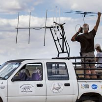 Radio collars are typically comprised of a small transmitter, battery and an antenna; they transmit a signal back to a receiver, so researchers can pick up the signal, and follow it to find the wearer. This is especially important when the animal you are studying is small and shy.