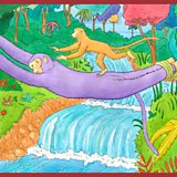 Deep in the forest grows a wonderful mango tree, tended by monkeys. Their king tells them to pick the fruit and keep it safe from greedy people. But the juiciest mango falls into the river and floats down to the Land of the Humans, where the Human King tastes it...and immediately wants more. He leads his army to the tree and claims it for himself, ordering his soldiers to kill the monkeys. The Monkey King makes a bridge from his own body, so the monkeys can escape. Sadly, the effort is too much for him and he dies. The Human King is moved by the Monkey King's sacrifice and learns the value of kindness.
