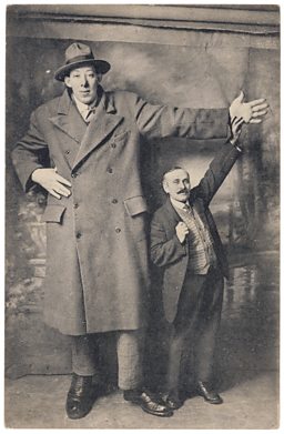 Both of these images come from the collections of John Kasmin, famous art dealer and avid postcard collector. The image on the left shows a couple who were happily married at 100 on their way to Mass. On the right is Ferdinand Contat, who was 2.35 metres in height and offered 1000 francs to anyone taller. These literal snapshots of life allow us a greater understanding of history – little bits of information that might have gone by the way side. Who are the couple? Did anyone take Contat’s 1000 francs from him? We don’t get the answer to our questions – in fact they raise more than they answer. The fleeting nature of the postcard allows room for speculation and mystery in a way that an Instagram of what you had to eat on your holiday doesn’t. It’s this that makes them truly special and worth finding. Even if it is just to wonder who the people depicted really were.