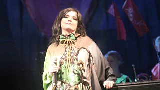 This year saw the 20th anniversary of the release of Björk's hugely acclaimed third album Homogenic. For someone who's constantly moving forward to the next thing, Lauren wondered if Björk ever looked back at those kind of landmark moments in her career. She says that because she tours with different bands playing different instruments each time, then she will check out her old work to see which songs would suit the band she's currently working with, but that's it.