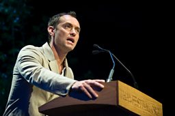 Jude Law filmed at Hay Festival in 2015