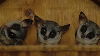 In Episode 1 of Big Little Journeys a nocturnal bushbaby must venture into a strange world of light to find a new home.