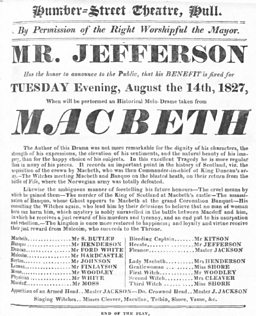 Here the actor Mr Jefferson has organised his “benefit” night – this means that the actor can keep the money raised at the door, once the wages and overheads for the company are paid off.