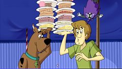 Cartoon capers with the cowardly canine and his human companions.