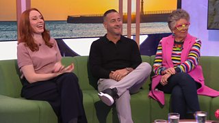 Professor Hannah Fry, Dame Prue Leith and Will Mellor join Alex and Roman on the sofa.