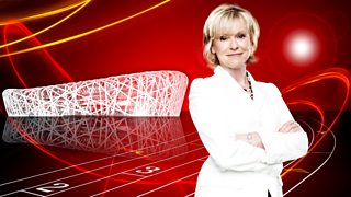 Sue Barker presents coverage of the closing ceremony of the 2008 Beijing Olympics.