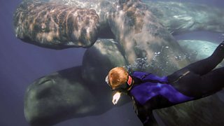 1/8The marine experts carry out pioneering science on the 20-metre-long sperm whale.