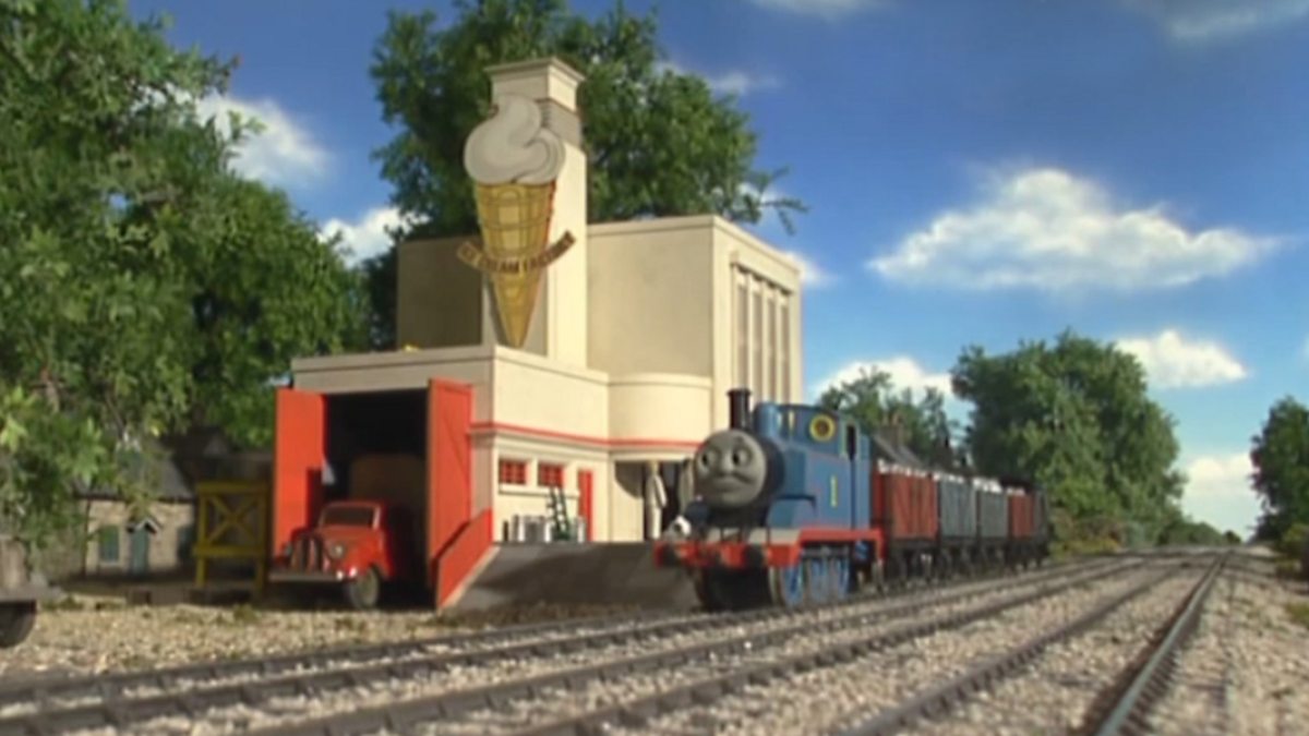Thomas has to deliver milk to the bakery, but he gets into a race with Emily and forgets to go slowly - so the milk is almost turned into butter.