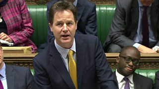 Recorded coverage of questions to the deputy prime minister, Nick Clegg, from 6 January.