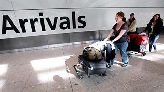 2/5Alan Dein heads for Heathrow Airport's 'baggage reclaim' area.