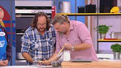 Viewers can cook along to the 7-Minute Supper, seared salmon with dill hollandaise. Check out the website bbc.co.uk/hairybikers for recipe details.