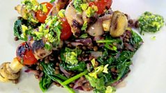 On the menu today: a seven-minute supper of sausage and rosemary skewers, which viewers can cook along to at home. Actor Ricky Groves talks about his early career as a chef and makes cod boulangere with roasted garlic, while Si and Dave plate up a warming coq au vin rouge.