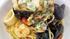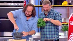 Two more families battle it out in the contest to find Britain's best family of cooks. Also in the cafe is broadcaster Hardeep Singh Kohli, who plates up an oxtail curry. Si and Dave make a smoked fish souffle and the seven-minute supper is seafood tagliatelle with garlic bread.