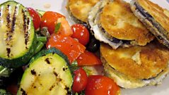 The Hairy Bikers host another semi-final round in the contest to find Britain's Best Cooking Family with a Black Forest gateau demonstration, and a 7 Minute Supper of fried mozzarella and aubergine sandwiches, which viewers can cook along to at home.