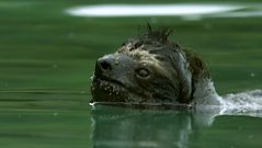 Rare swimming pygmy sloth
