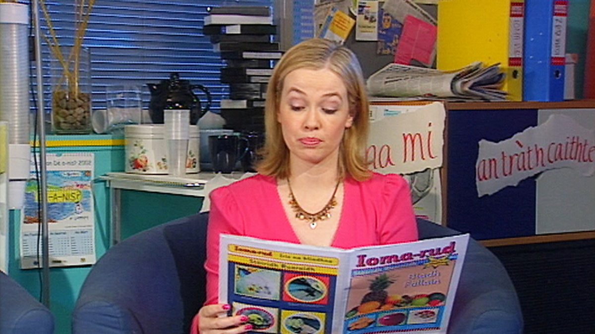 Ioma Rud has received a letter from school pupils who are unhappy with the food in their canteen. They would like their letter printed in the paper but before Sine allows this, it needs rewriting. Ruairidh visits the school and explains the key points that need to be included.