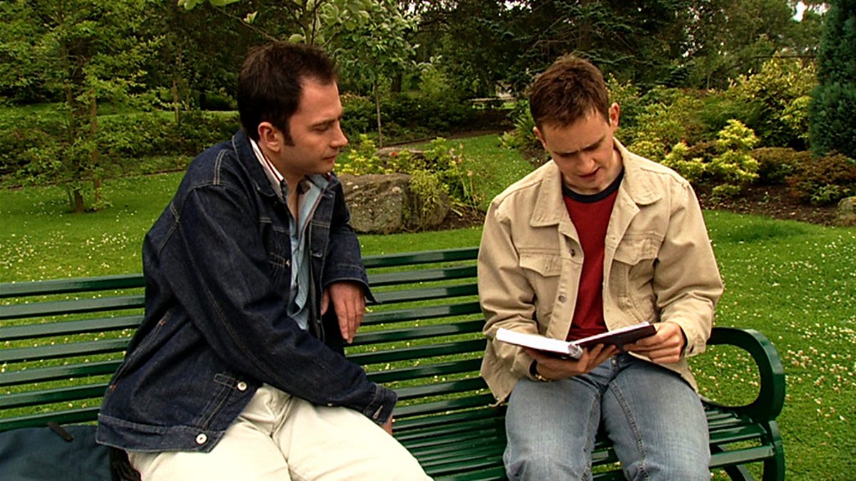 Sìne explains the importance of a diary to Ruairidh and Donaidh but she's very upset about losing the pen she received as a birthday present and blames Ruairidh. He's not happy and finds it very difficult to concentrate on his writing.