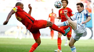 Live football commentary from the third quarter final, from Brasilia, Argentina v Belgium.
