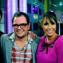 Matt Baker is on the fourth day of his rickshaw challenge for Children in Need, so joining Alex Jones is joined on the sofa tonight by Joe Crowley with special guest funnyman Alan Carr. Simon Boazman is also in to tell us about the dangers of cockle picking and we'll be going live to York to see how Matt Baker is getting on.