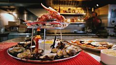 Golden goose takes centre stage, served with perfectly ruffled roast potatoes, chestnut stuffing and an intense orange sauce. A simple but elegant seafood chowder and a spectacular platter of Cornish shellfish with homemade mayonnaise would certainly grace the finest tables of France. And to finish, Raymond shares a true French tradition in a galette des rois - layers of puff pastry, almond cream, caramelised pears and a little surprise - a great dessert throughout the festive season.