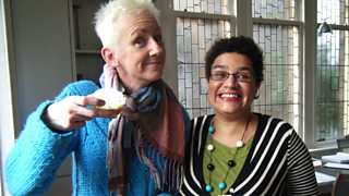 2/3Scottish poet and writer Jackie Kay does her best to cheer up Muriel Gray.